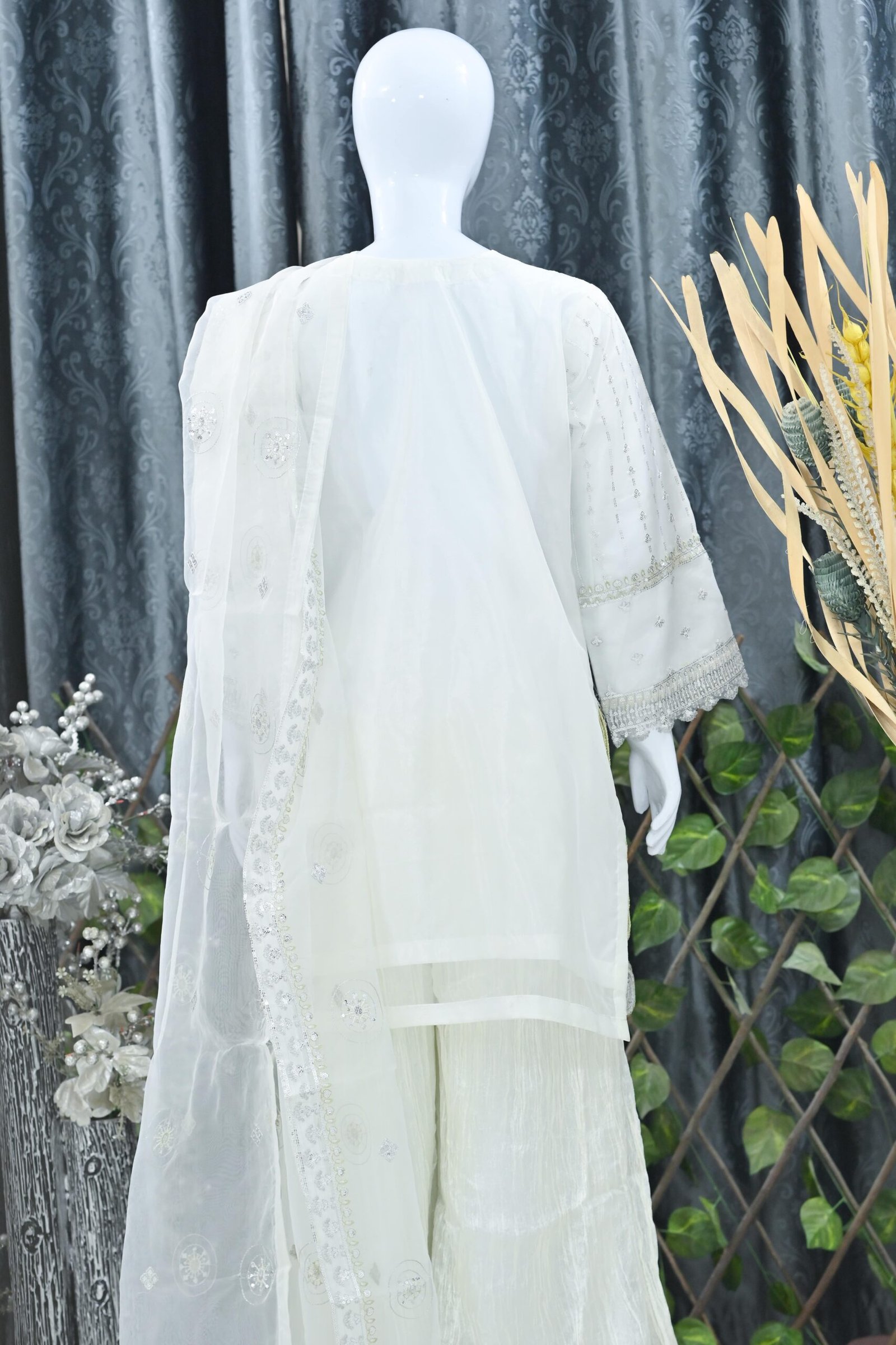 White is an identity of the people of Pakistan. It is a very common color, yet it looks extremely graceful. And when a white outfit is designed in an angrakha style, it is almost impossible for anyone not to like it.In the Pakistani fashion industry, the white angrakha-style shirt holds a very unique and special place. Keeping this in mind, Ayesh Boutique has introduced this dress.